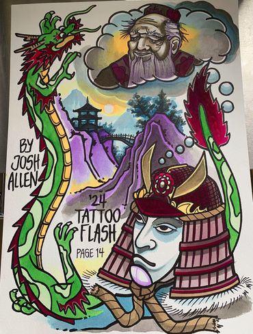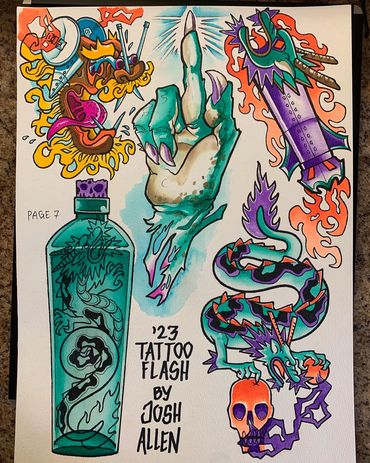 Joshua Allen has been tattooing for close to 25 years and has worked in both street shops and private studios. He specializes in Japanese and American Traditional tattoos but can bring just about any idea to life. He can do something small and simple or a full sleeve. He would love to tattoo his flash so check it out and book an appointment with him!